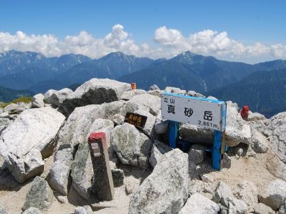 | 11:03 標高2,861m 真砂岳 | 11:10真砂岳から眺める 立山三山 |