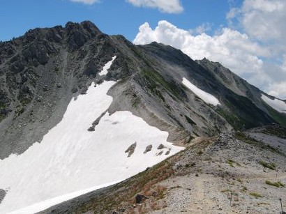 今年も室堂から雷鳥沢に一旦下って、大走りのコースを登って真砂岳に至り、そこから立山三山を目指した。 大走りのコースを登っているのは私の他一人位のようだ。 |