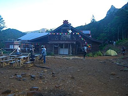 | 6:11 標高約2,220m 赤岳鉱泉 | 6:46 標高約2,340m 行者小屋に着いた |