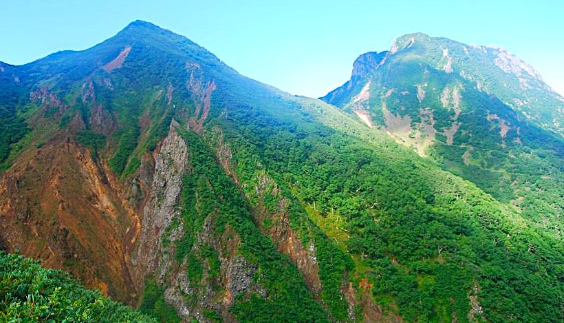 | 11:05 標高2,240m 左:中岳、左:阿弥陀岳 |
