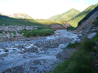 | 9:26標高2,760m コマクサ | 10:28標高2,340m行者小屋でギョウザ |