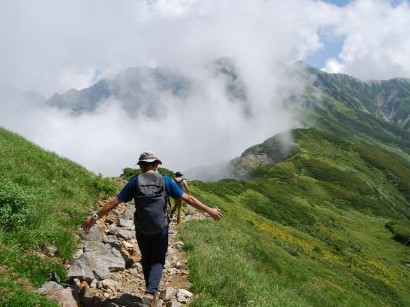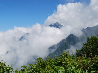 | 10:30標高約2,420m 雲の合間から剱岳が | 10:41標高約2,380m |